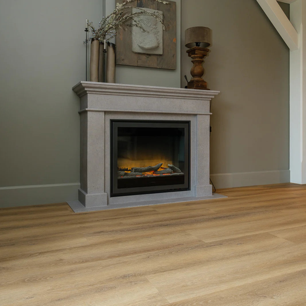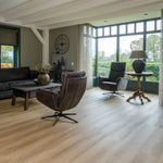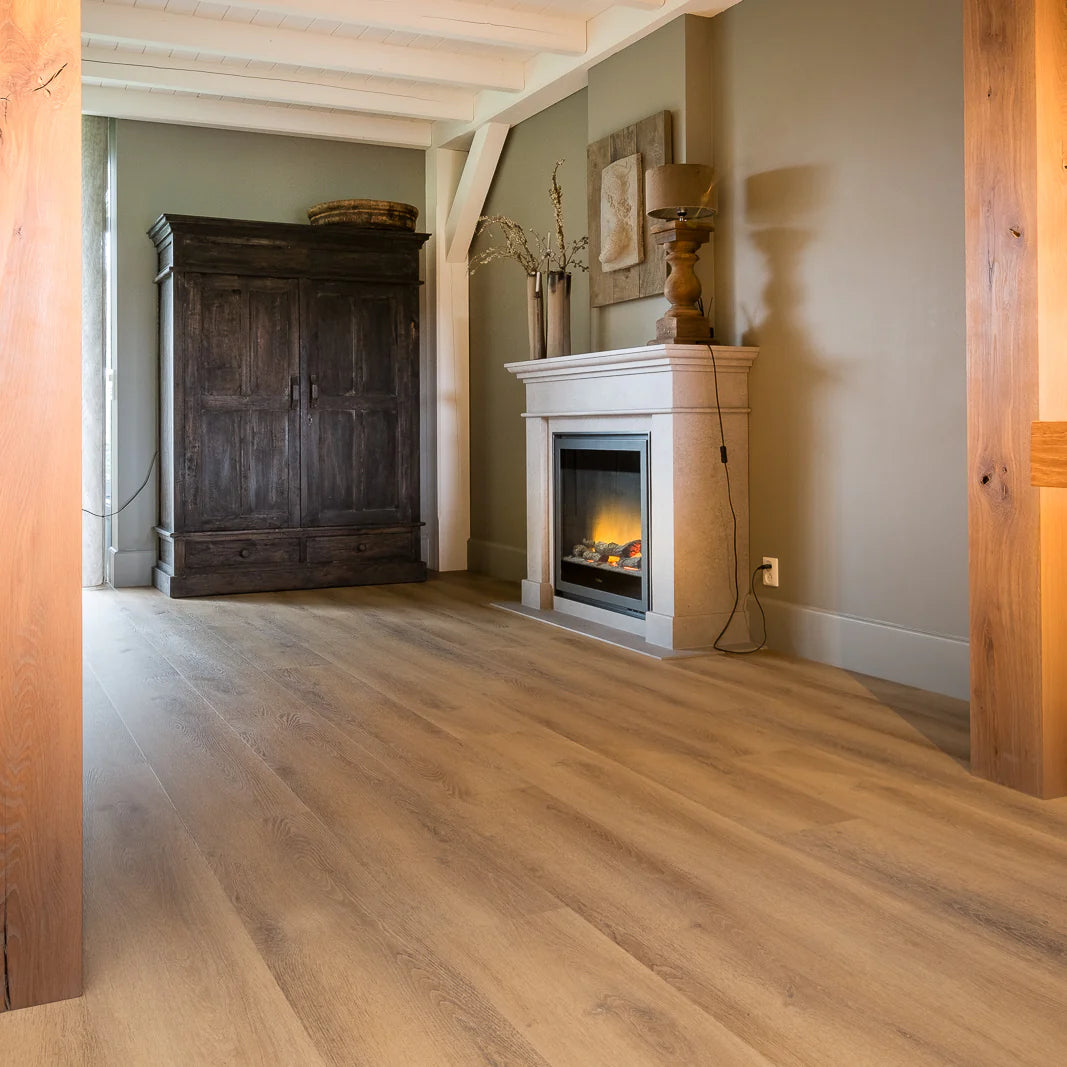 De warme bruintint van deze vloer spreekt tot de verbeelding en past perfect bij verschillende woonstijlen, van klassiek en landelijk tot modern en industrieel. De brede planken zorgen voor een ruimtelijk effect en een luxe uitstraling, waardoor de vloer zowel rust als karakter aan uw interieur toevoegt. Door de natuurlijke uitstraling van het hout, in combinatie met het praktische karakter van PVC, koopt u een stijlvolle basis die u naar eigen smaak kunt afstylen en inrichten.