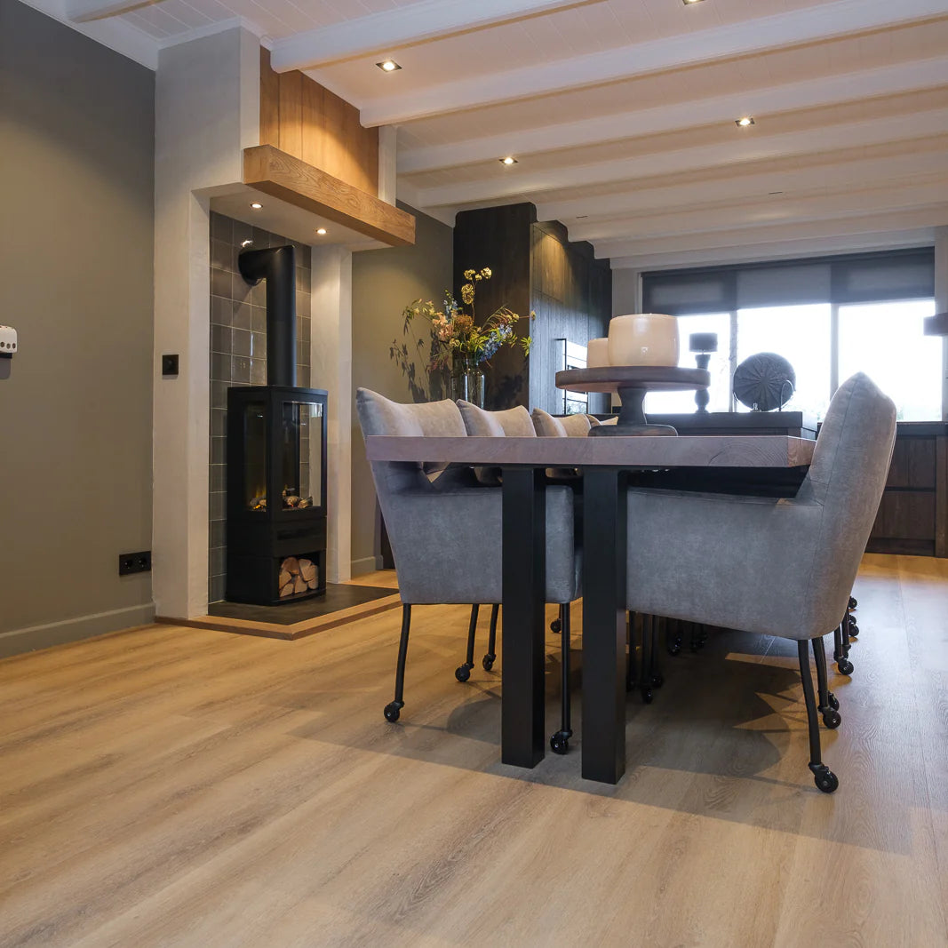 Wat deze vloer extra aantrekkelijk maakt, zijn de slimme eigenschappen die het verschil maken op de langere termijn. De Rigid Click PVC-constructie betekent dat u heerlijk zwevend kunt leggen, zonder gereed om het resultaat direct te bewonderen – klaar voor intensief gebruik. Dankzij de geïntegreerde schuimondervloer ligt de vloer comfortabel, dempt deze geluid en kunt u hem probleemloos installeren over een bestaande, egale ondergrond. Het unieke kliksysteem maakt het monteren bijzonder eenvoudig, ideaal als u kiest voor zelf leggen. Maar ook als u hulp inschakelt van een professional, staat garantie voor een snelle, schone en strakke afwerking.