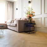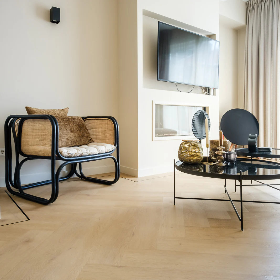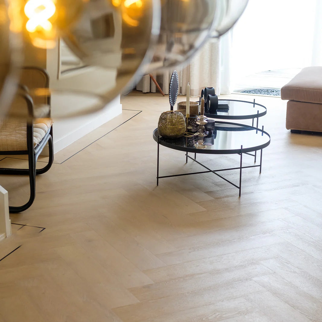Het visgraatpatroon is een klassieker die al generaties lang geliefd is. De planken van 153 x 765 mm geven een groots effect, zonder dat het druk oogt. Het royale XL-formaat zorgt voor een ruimtelijk effect en laat kamers groter lijken. De lichte eikenkleur past bij elk interieur. Creëer in elke ruimte een tijdloze uitstraling die decennialang mee kan.