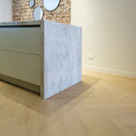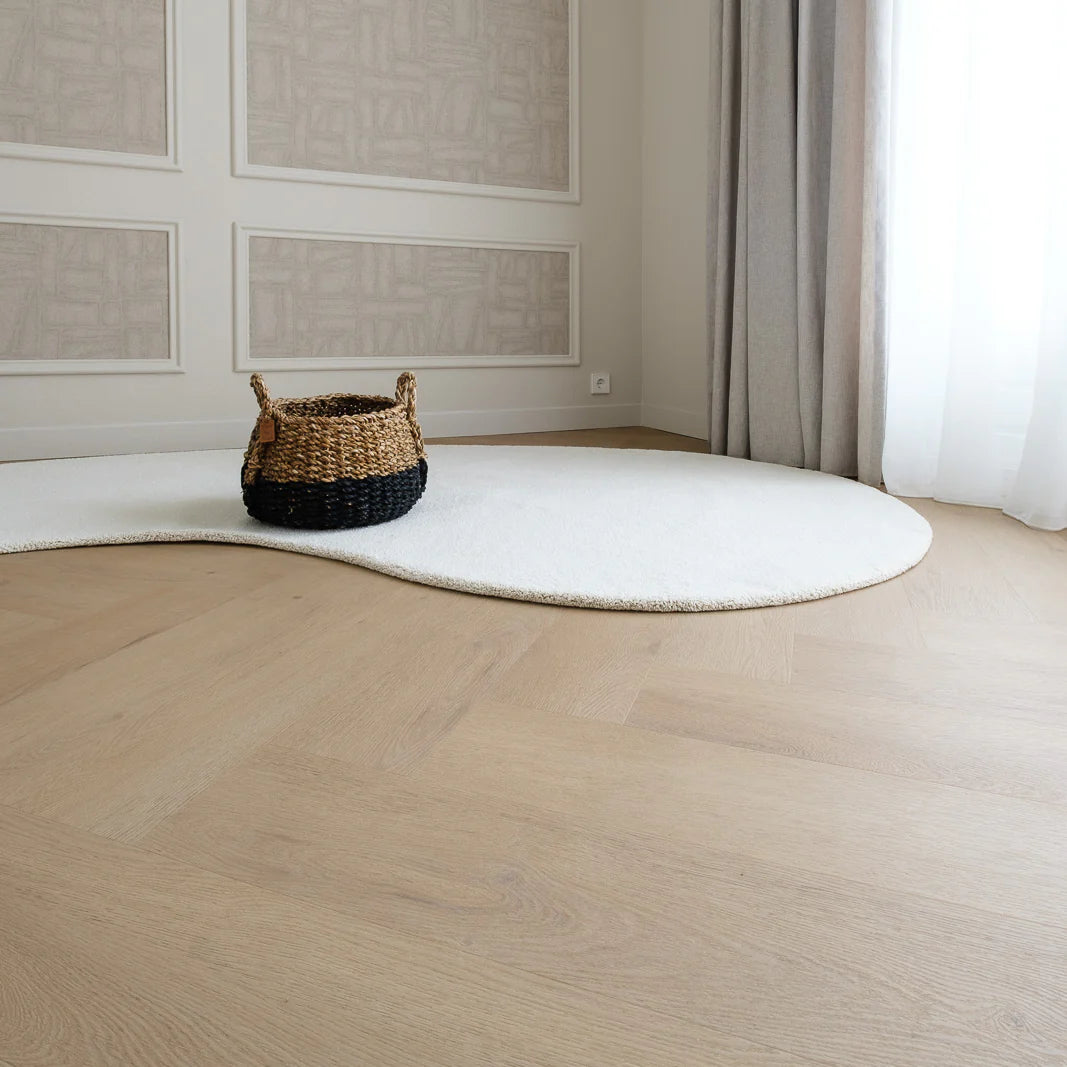 De kleur “77” in de Palazzo-serie staat bekend om zijn warme, neutrale houttint. Niet te geel, niet te grijs. Hierdoor past de vloer in zowel moderne als klassieke interieurs. In combinatie met het XL visgraatmotief geeft het elke ruimte karakter, zonder dat het te overheersend wordt.