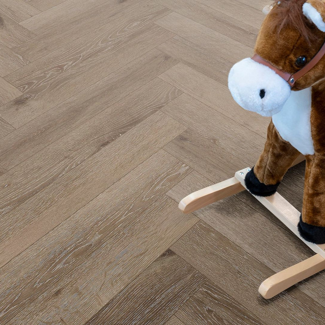 Het zwevend click PVC systeem maakt het leggen van deze visgraatvloer overzichtelijk en ook geschikt voor de doe-het-zelver. U heeft geen lijm nodig, wat de installatie snel, schoon en efficiënt maakt. De vloer kan gelegd worden over veel verschillende ondergronden, wat het bestel- en legproces vereenvoudigt. Voor optimale stabiliteit en comfort kunt u de vloer combineren met een passende PVC ondervloer.