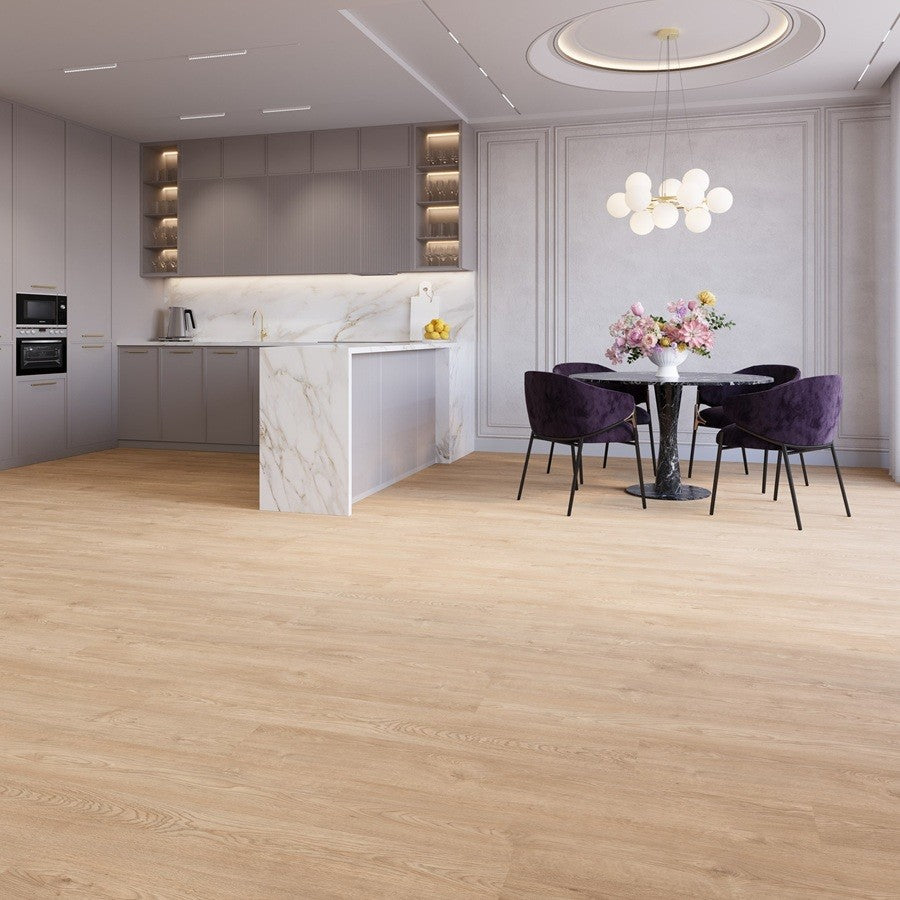 Joka LVT 555 Evolut Plank Dryback 5904 Palm Oak brengt een eigentijdse en natuurlijke sfeer in elke ruimte. De warme, licht vergrijsde houttint en de realistische EIR-structuur geven de vloer een stijlvol en levensecht karakter. Met een dikte van 2,5 mm en een sterke 0,55 mm slijtlaag is deze vloer geschikt voor zowel woon- als projectgebruik. De royale plankmaat van 1320x196 mm zorgt voor een strak en ruimtelijk effect. Verlijmde plaatsing. Verpakt per 3,47 m².