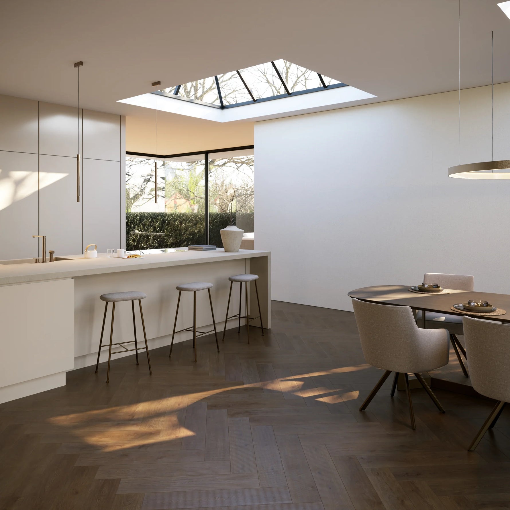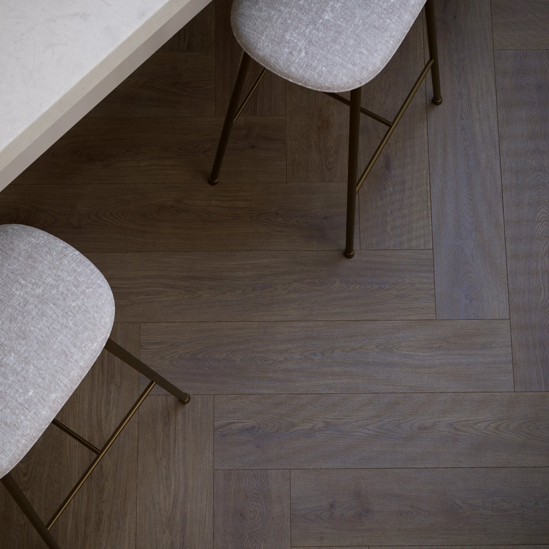• Hyperrealistisch visgraatpatroon met XL-formaat voor een ruimtelijk en tijdloos interieur