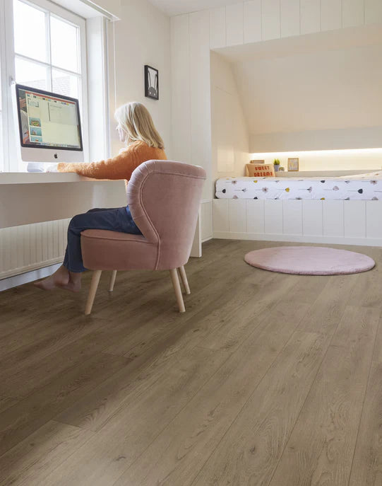 De COREtec Essentials 1800++ Series Baltimore Oak 84 Click PVC vloer biedt een luxe houtlook gecombineerd met de duurzaamheid en het comfort van PVC. Met een paneelformaat van 183 x 18 cm en een dikte van 8.5 mm geeft deze vloer een warme en natuurlijke uitstraling aan elke ruimte. Dankzij het eenvoudige kliksysteem is de installatie snel en probleemloos. De vloer is waterbestendig, geschikt voor vloerverwarming en voorzien van Micro 4V-groeven voor een realistische plankuitstraling. Inclusief 20 jaar garantie voor langdurig woonplezier.