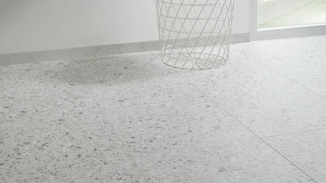 De COREtec Stone Ceratouch Branco 0990B Click PVC tegelvloer biedt een moderne en luxueuze uitstraling met de robuuste look van natuursteen. Dankzij het royale formaat van 90 x 45 cm en de 8 mm dikte creëert deze vloer een strak en elegant effect in iedere ruimte. De vloer is volledig waterbestendig, eenvoudig te onderhouden en ideaal voor gebruik in combinatie met vloerverwarming. Het handige kliksysteem maakt de installatie eenvoudig en snel. Voorzien van Micro 4V-groeven voor een realistisch tegelbeeld en geleverd met 15 jaar garantie.
