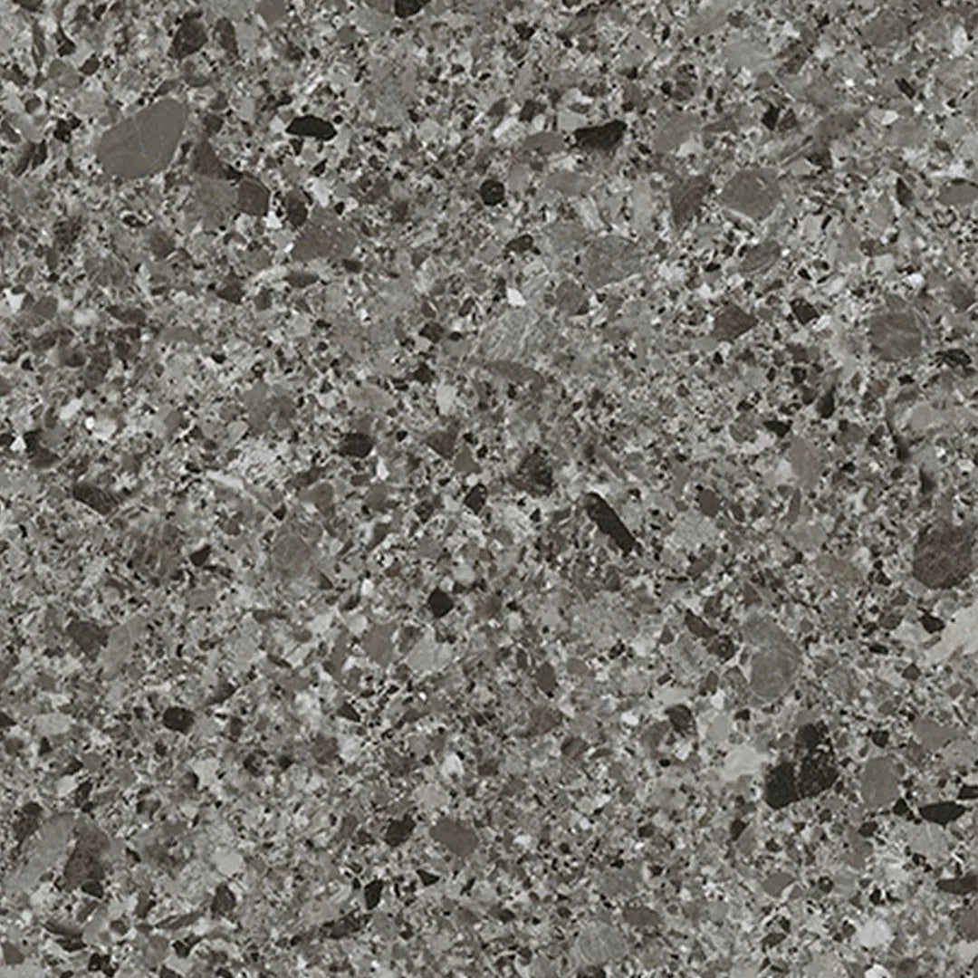 De Branco 0997B valt direct op door zijn donkergrijze terrazzo design. De rijke tekening met verschillende nuances en subtiele lichte spikkels zorgt voor een elegante, stoere look die perfect past in moderne, minimalistische en industriële interieurs. De vloer geeft uw ruimte een karaktervolle uitstraling zonder dat het te dominant wordt, wat zorgt voor een harmonieuze basis waarin meubelstukken en accessoires optimaal tot hun recht komen.