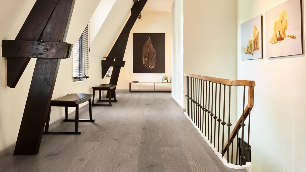 De COREtec XL-End 2594 Belvoir Click PVC vloer combineert een robuuste houtlook met de voordelen van een duurzame PVC vloer. Met een dikte van 15 mm en een paneelformaat van 210 x 22.8 cm biedt deze vloer een luxueuze uitstraling en een solide gevoel onder de voeten. Dankzij het kliksysteem is de installatie snel en eenvoudig. De vloer is waterbestendig en geschikt voor vloerverwarming, voorzien van Micro 4V-groeven voor een natuurlijke plankuitstraling, en biedt 15 jaar garantie.
