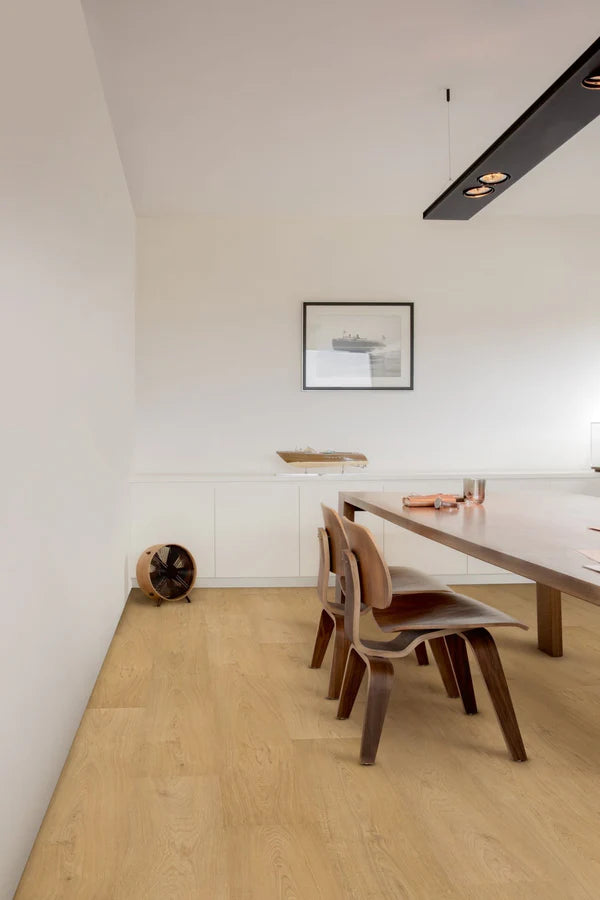 Deze waterbestendige vloer is ideaal voor vochtige ruimtes zoals de keuken of hal en combineert perfect met vloerverwarming. De zachte, stille eigenschappen bieden extra wooncomfort en geluidsdemping. Elke verpakking bevat 3,43 m² (10 planken).