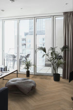 De Gotham Oak Natural visgraatvloer is perfect voor wie een licht interieur wil combineren met een stijlvolle legmethode. De warme, natuurlijke houttint in visgraatpatroon brengt rust en klasse in elke ruimte. Dankzij de sterke 0,55 mm slijtlaag en gebruiksklasse 33 is de vloer geschikt voor intensief gebruik in huis én kantoor. Een echte eyecatcher met een rustige uitstraling.